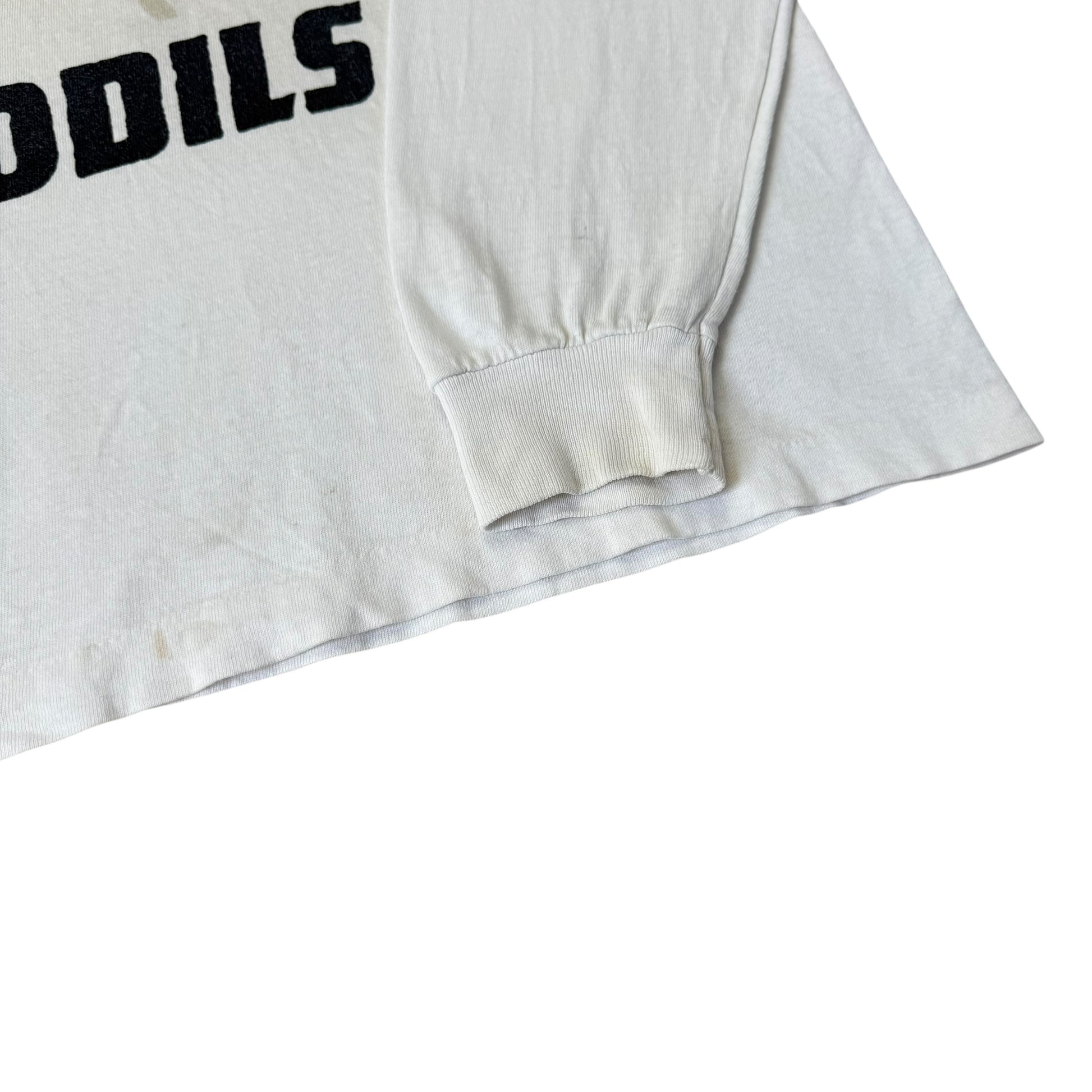 Mega vibrant promo shirt for New Fast Automatic Daffodils 1990 single ‘Big’ sporting the bands iconic floral motif on the front and back. Worn in with some large marks to the sleeve and one mark to the front of the shirt (all pictured).