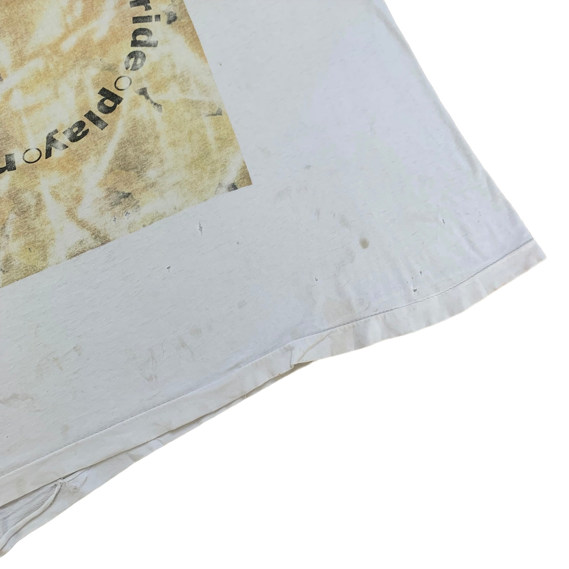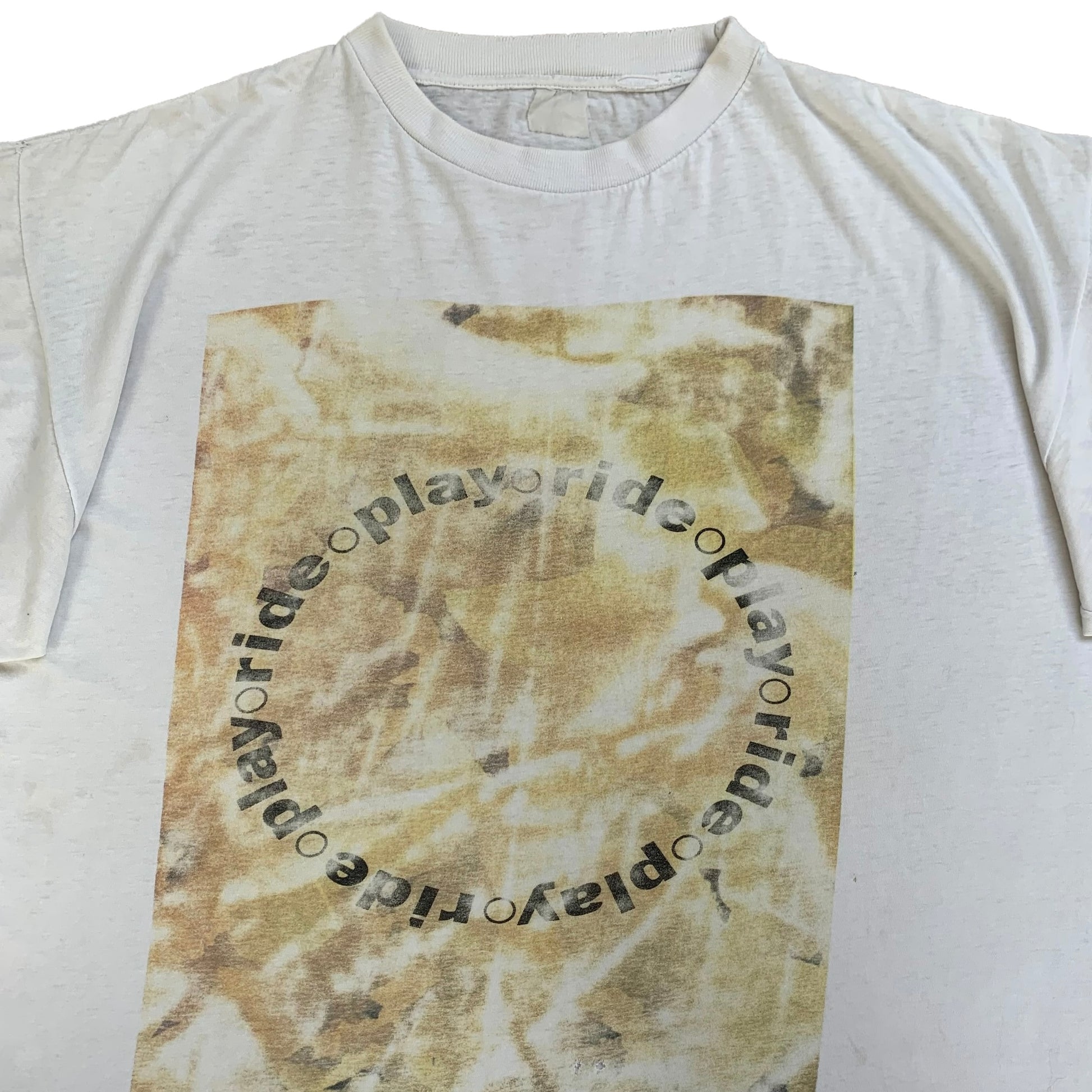 Stunning promo shirt for Ride’s 1990 EP ‘Play’ featuring the beautiful floral artwork with amazing wear to the print and shirt itself. Nicely softened and thin with a few minor pinholes scattered around.