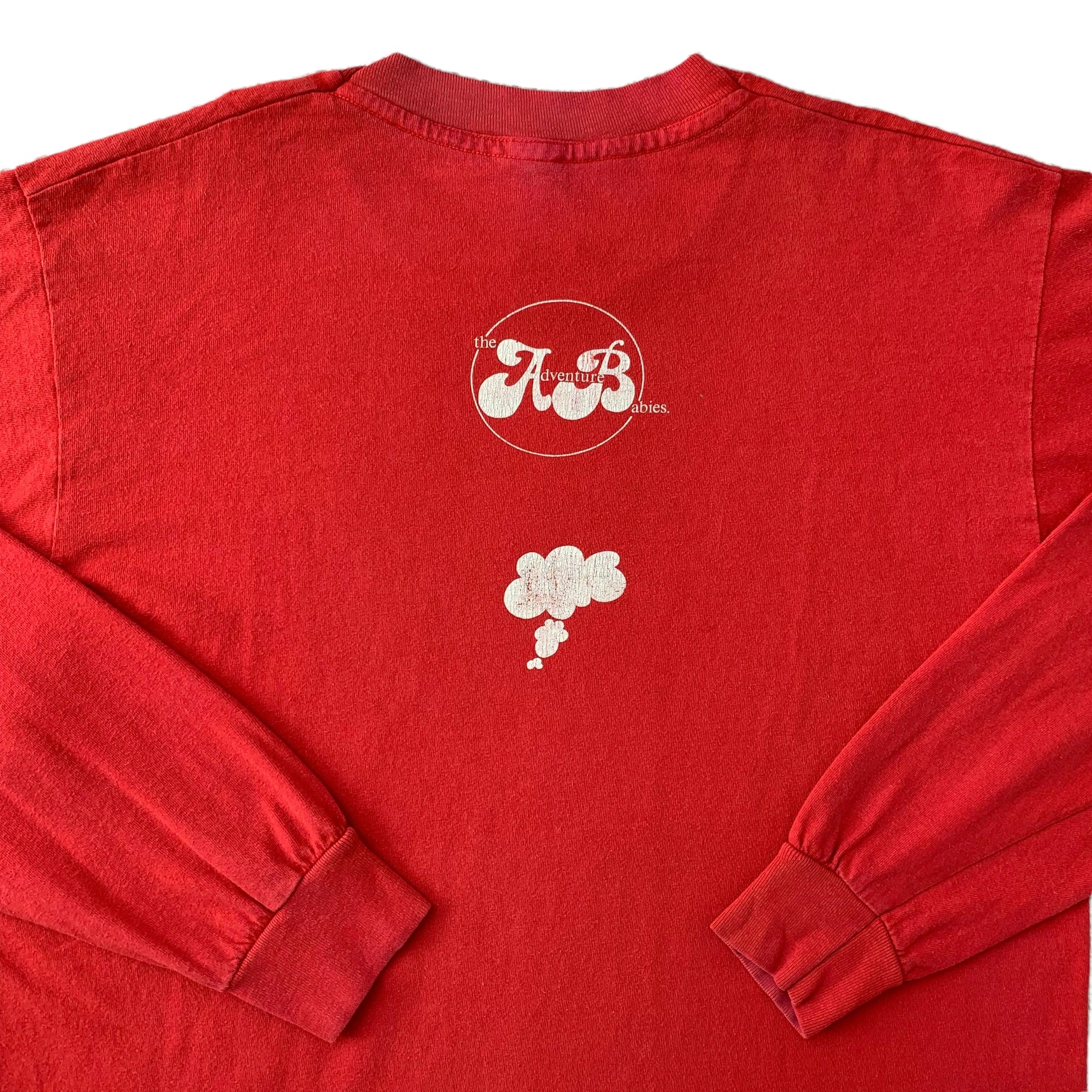 Super scarce and rarely seen early 90s Factory Records long sleeve celebrating the signing of indie band The Adventure Babies to the label in late 1990 - they were the last band to be signed by Factory before its bankrupt in 1992. The shirt is a brilliantly vibrant red with a great car graphic on the chest with ‘Fac221’ on the license plate and a small Adventure babies graphic on the reverse of the shirt. Well worn with a couple of paint marks, no major flaws.