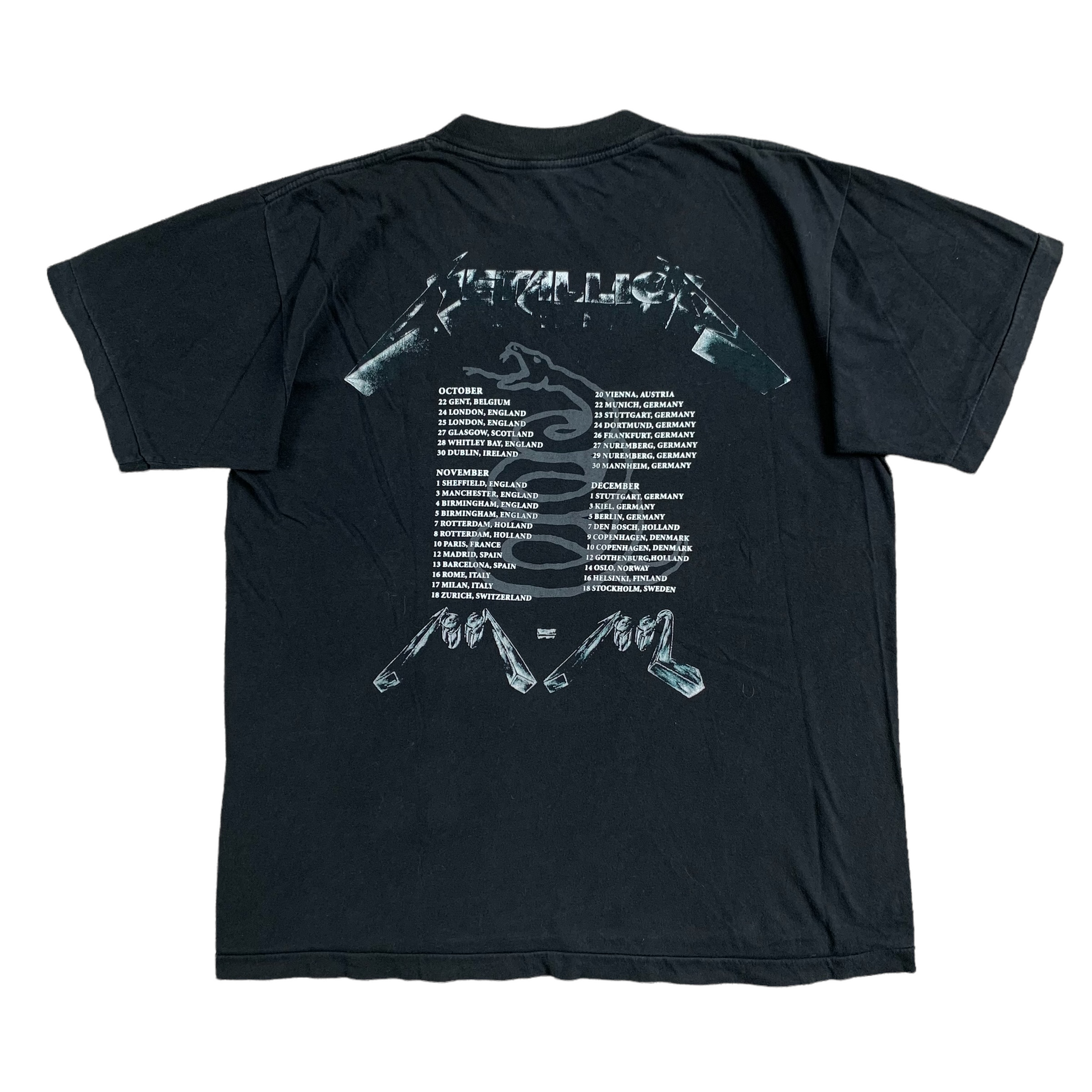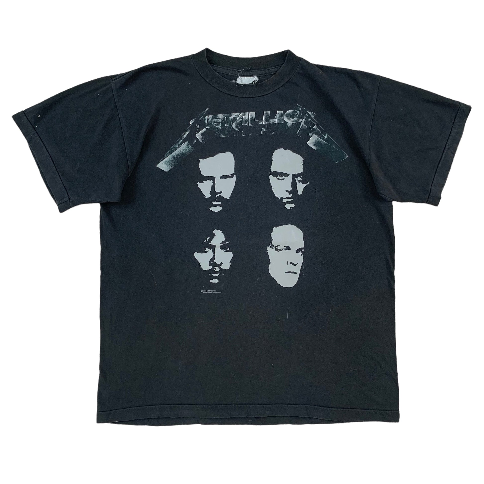 Classic Metallica shirt from their 1991/1992 tour following the release of their self-titled album - the shirt has a killer graphic featuring the faces of the band members on the chest and tour dates along with classic Metallica imagery on the reverse. Lightly worn with no flaws.