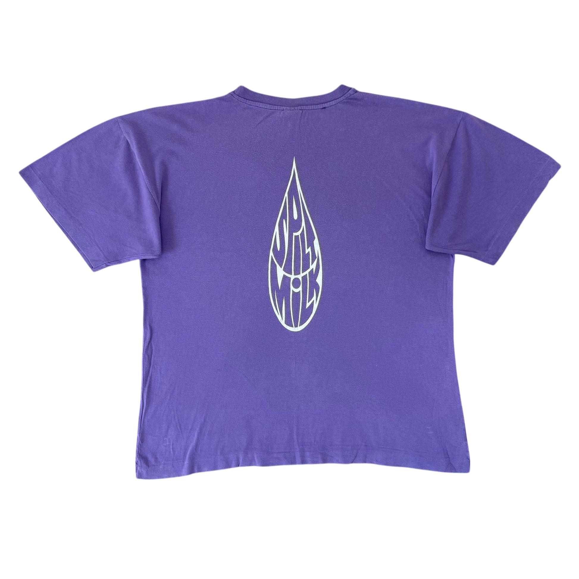 Great shirt from the release of Jellyfish’s second and final album ‘Spilt Milk’ in 1993 - really cool spellout graphic across the chest and album title on the back of the slightly faded purple tee.