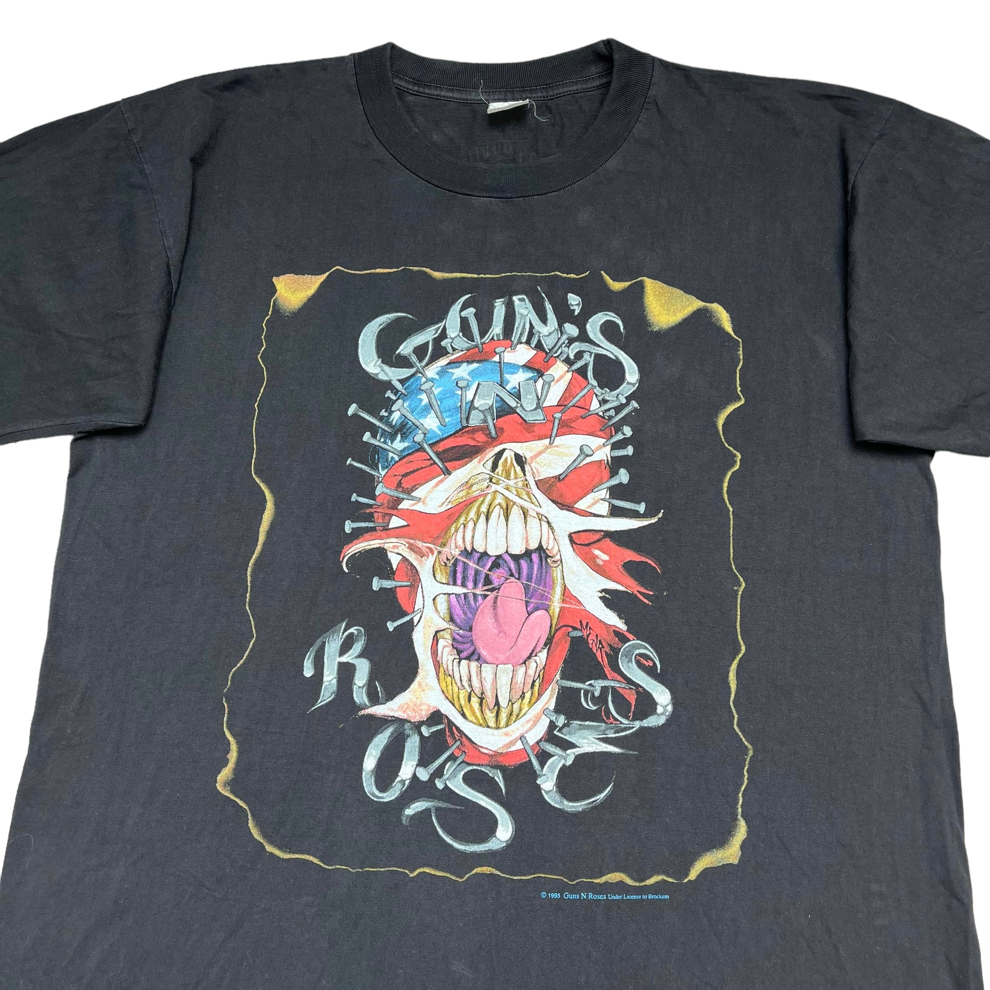 Absolutely killer shirt from rock legends GNR - the perfectly faded shirt features amazing skull artwork printed on the chest with a spray can graphic on the reverse, licensed to Brockum. No flaws.