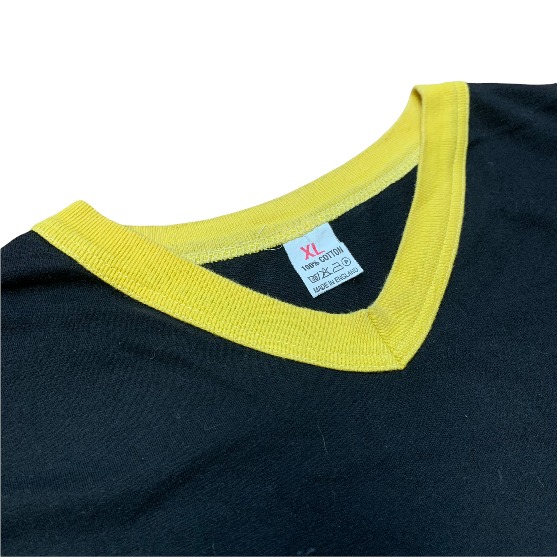 Sick bootleg shirt for bought on the tour of Embrace’s 1998 single ‘All You Good Good People’ - the shirt features the EP artwork along with spellout and tour dates graphic on the reverse. Sick ringer with contrasting yellow collar and sleeves. Generic tag.