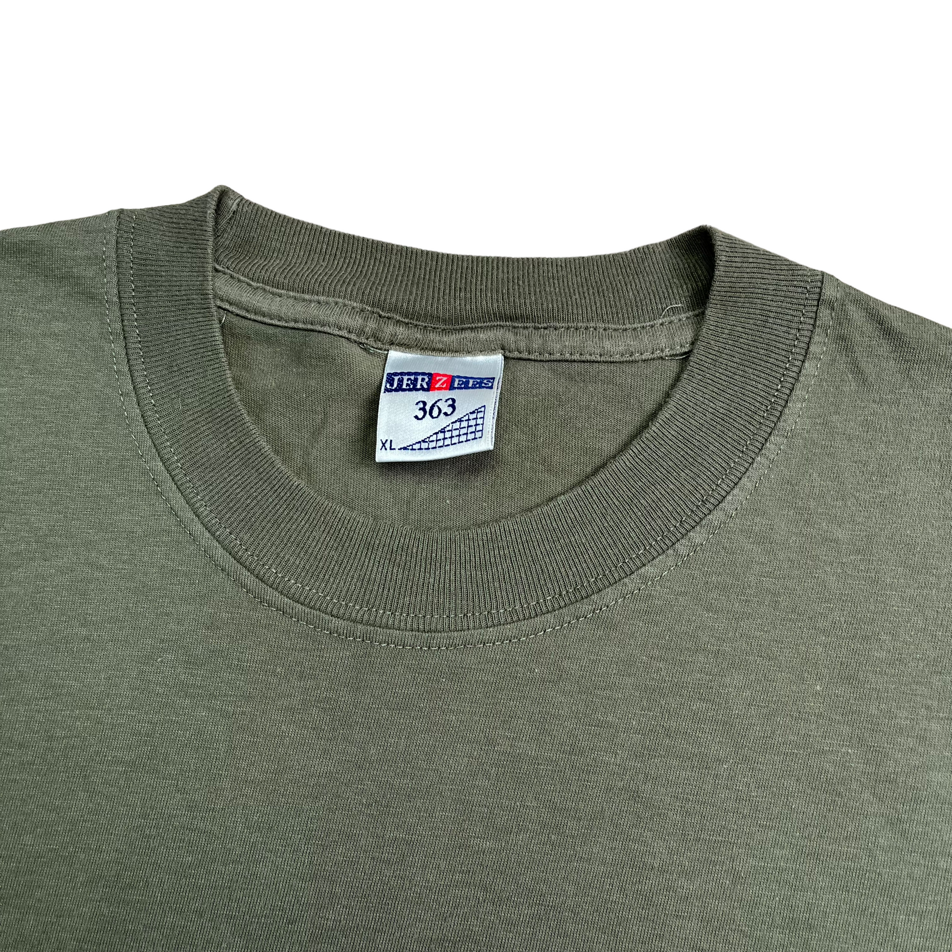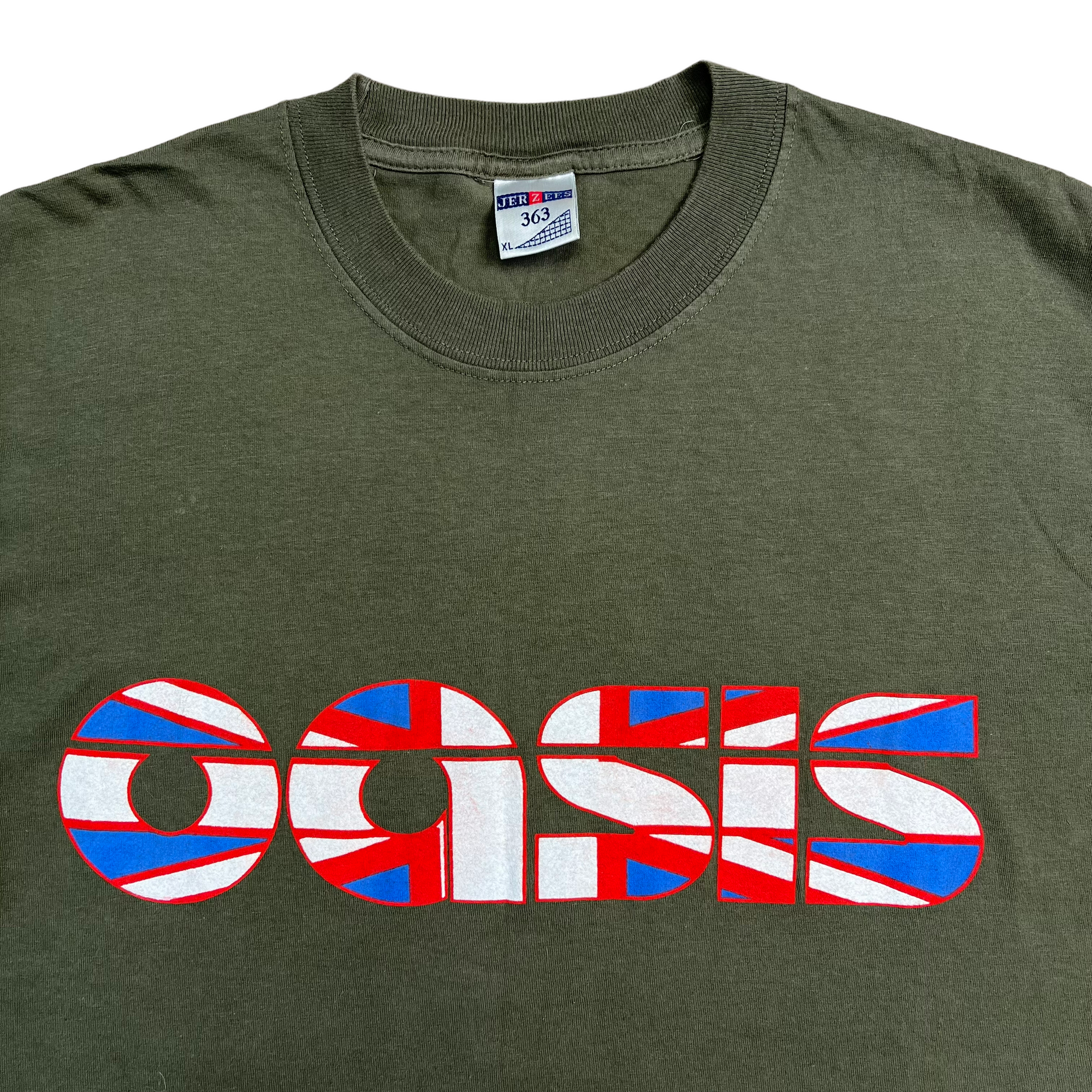 Brilliant Oasis shirt from the tour following the release of their 2002 album ‘Heathen Chemistry’ - the khaki green shirt features Oasis’ 2nd generation logo in Union jack colours with an awesome huge graphic with tour dates on the reverse. Very lightly worn, no flaws.