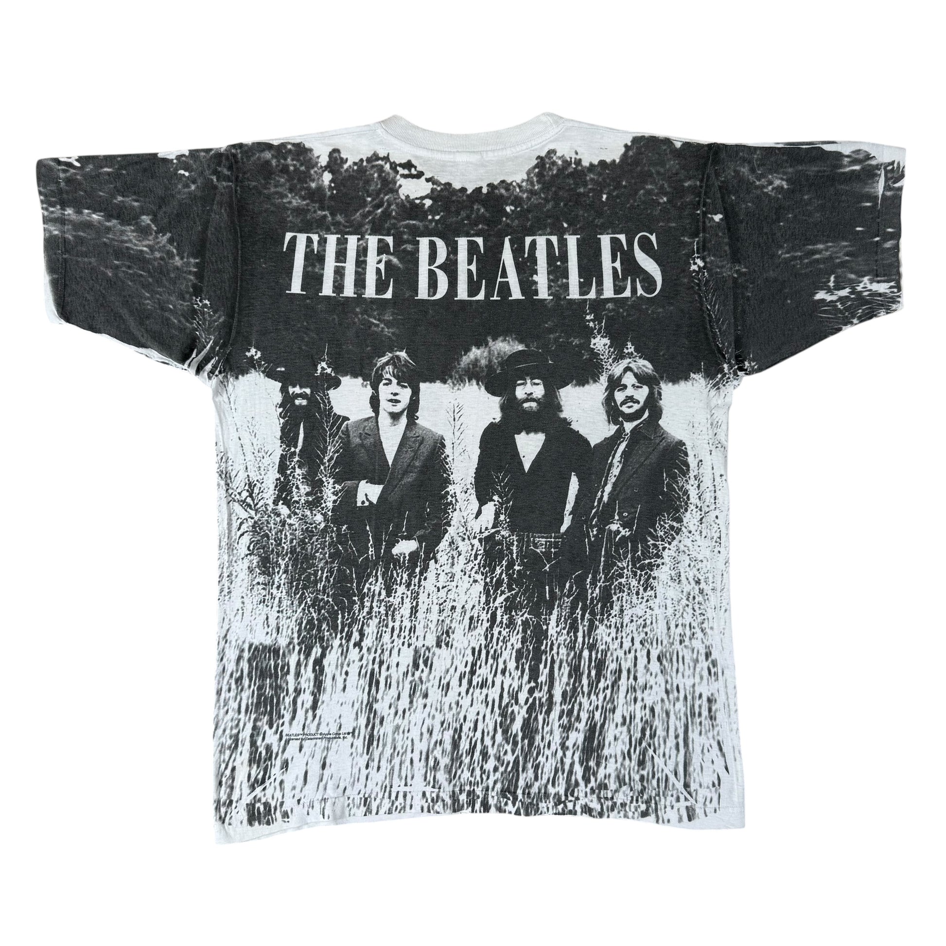 Iconic mid 90s The Beatles shirt with incredible all over print of the band on both sides, famously worn by Oasis’ Liam Gallagher. Lightly worn with no flaws or major signs of wear.